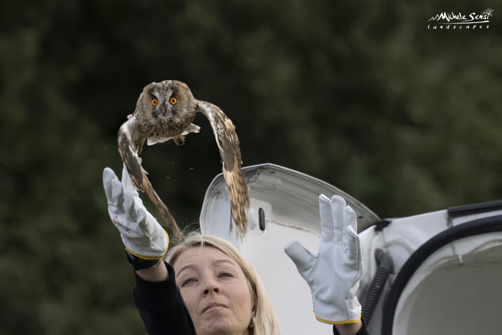 Nonostante il grande numero di partecipanti il tutto si è svolto nel silenzio ed il rispetto per gli animali che tornavano in libertà dopo un periodo di convalescenza presso la struttura di Caverzana a San Polo. Animali feriti che dopo aver ricevuto le cure necessarie dai Volontari capitanati da Ivano Chiapponi sono tornati a solcare i nostri cieli e prati.