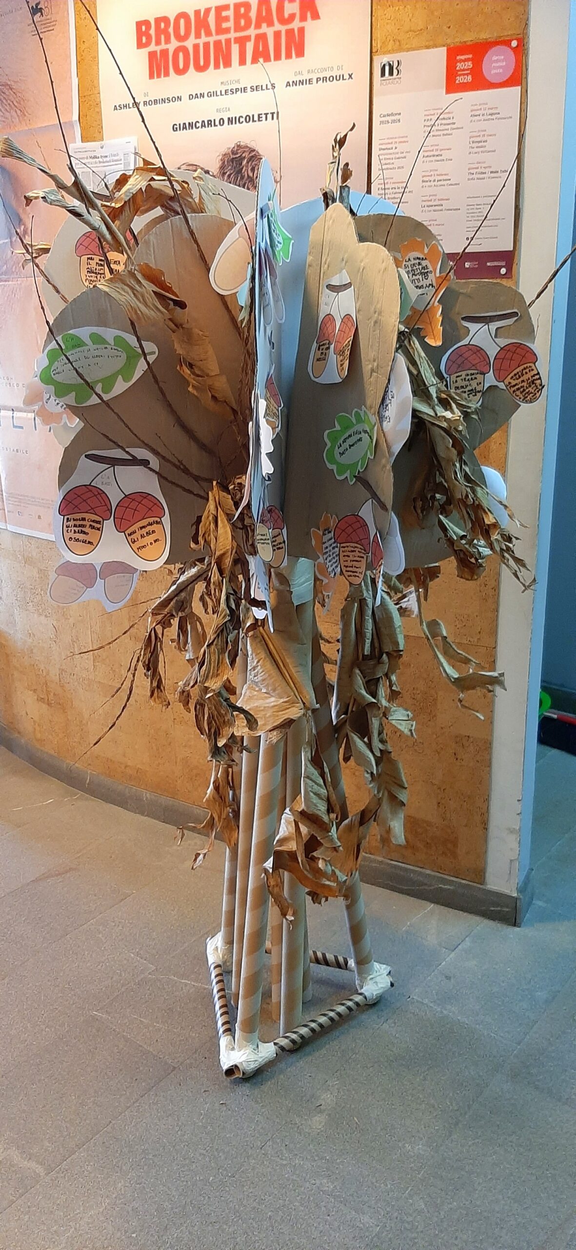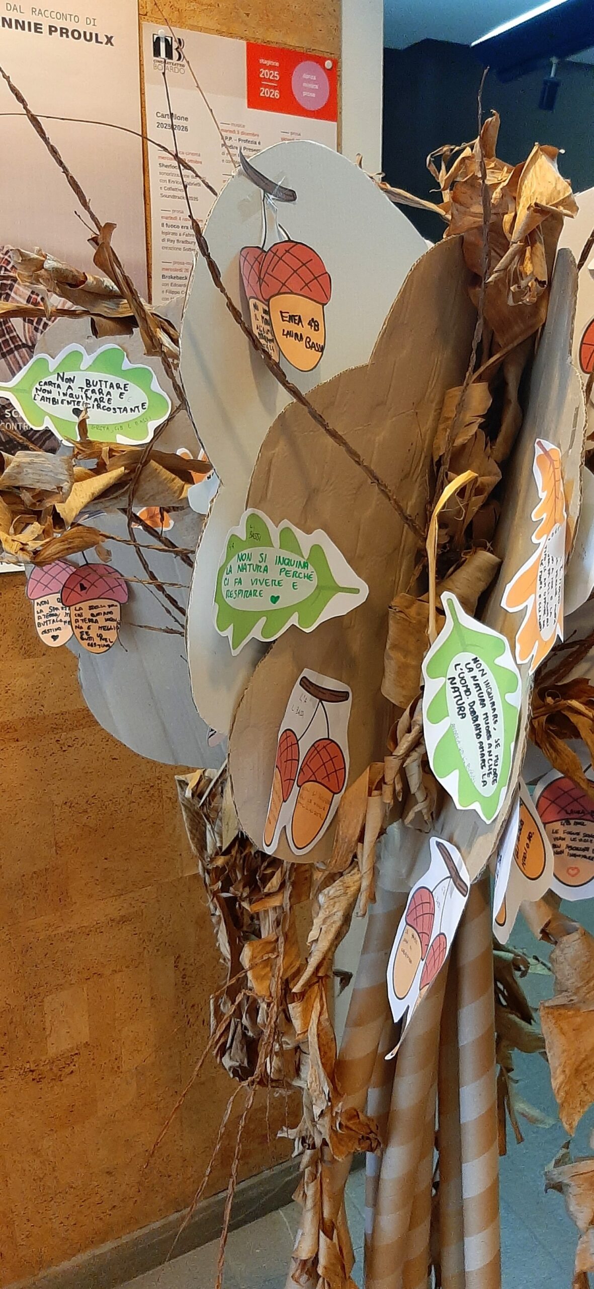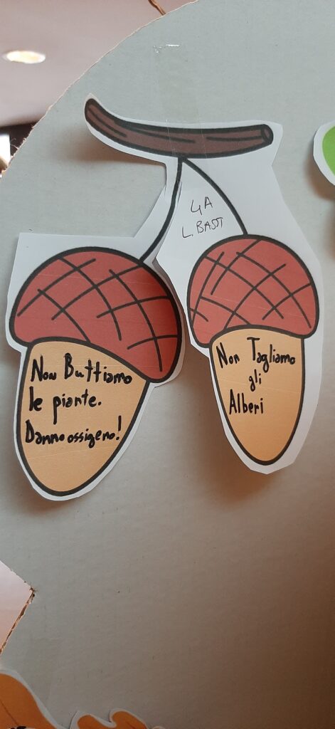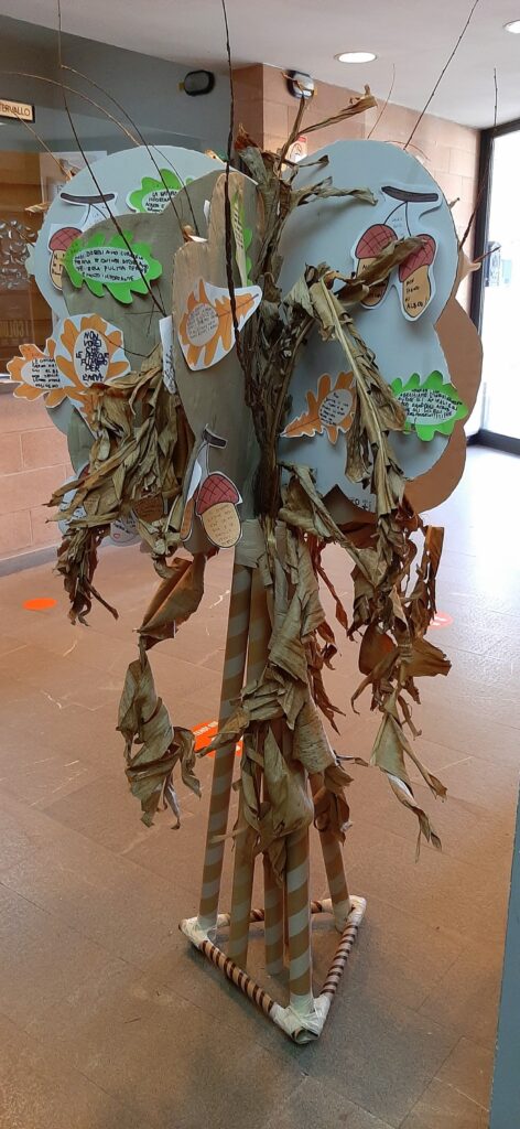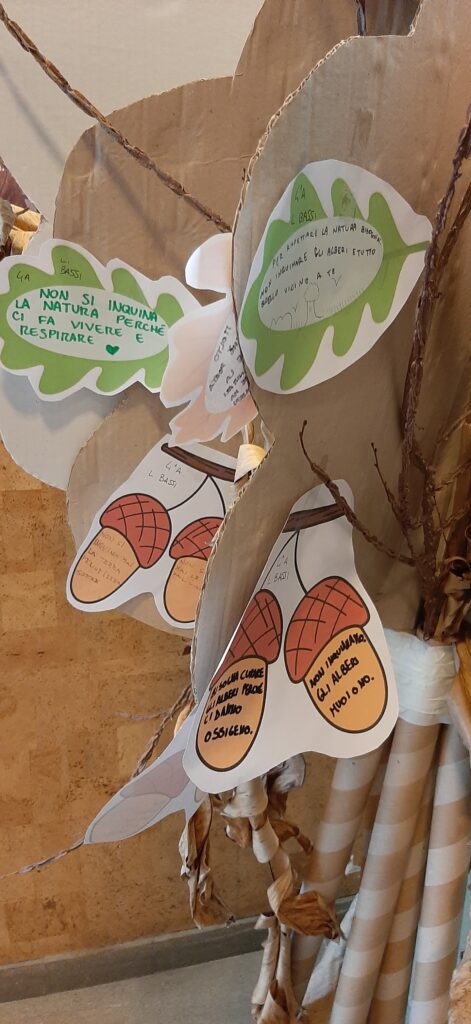 In preparazione alla giornata, bambine e bambini hanno riflettuto sull’importanza della biodiversità, della tutela dell’ambiente e delle buone pratiche quotidiane per salvaguardare gli alberi che ci circondano e, di conseguenza, anche noi stessi. Hanno così realizzato veri e propri slogan, diventati le “foglie e i frutti” di un allestimento speciale che li attendeva all’interno del cinema.