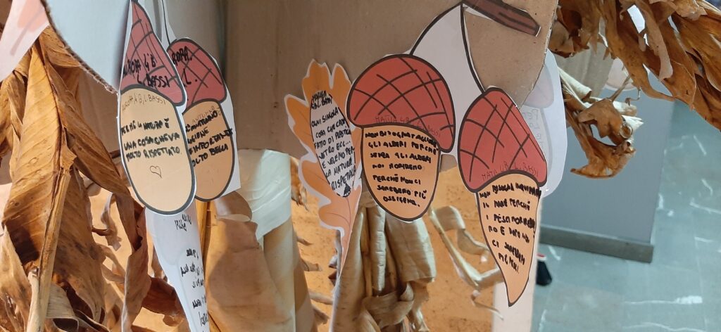 L’iniziativa ha unito l’esperienza concreta della piantumazione di ghiande di roverella (Quercus pubescens) e farnia (Quercus robur), le osservazioni scientifiche e la comprensione del ciclo naturale, con la visione del film d’animazione “La quercia e i suoi abitanti”, proiettato questa mattina al Cinema Teatro Boiardo.