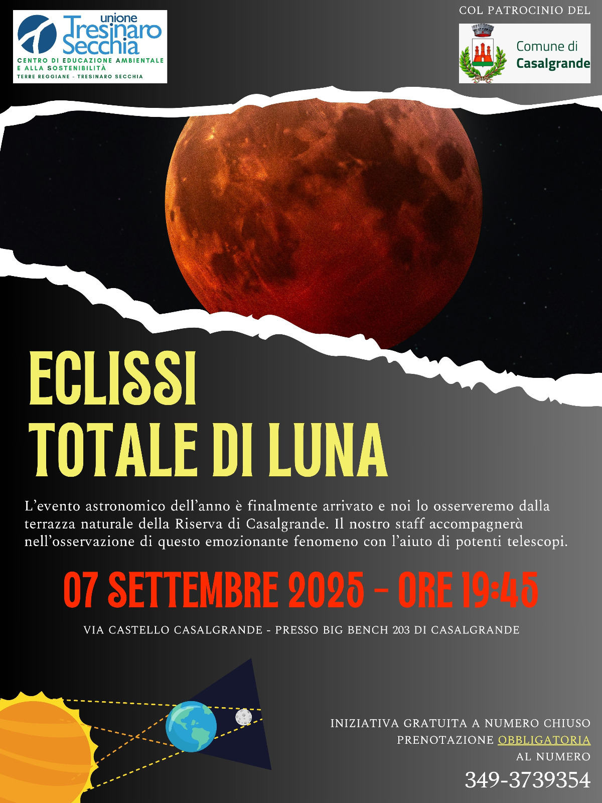 L’evento astronomico dell’anno è finalmente arrivato e noi lo osserveremo dalla terrazza naturale della Riserva di Casalgrande. Il nostro staff accompagnerà nell’osservazione di questo emozionante fenomeno con l’aiuto di potenti telescopi.