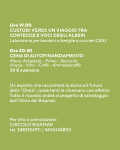 💚 Tutto il ricavato sarà destinato al progetto di salvataggio dell’Olmo del Bisamar.