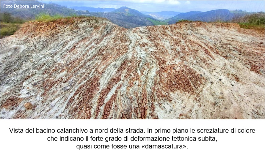 I colori si distribuiscono generalmente in bande più o meno regolari, deformate successivamente dalla tettonica, e all’interno delle argille si possono trovare livelli o frammenti di arenarie fini, siltiti e calcari marnosi.