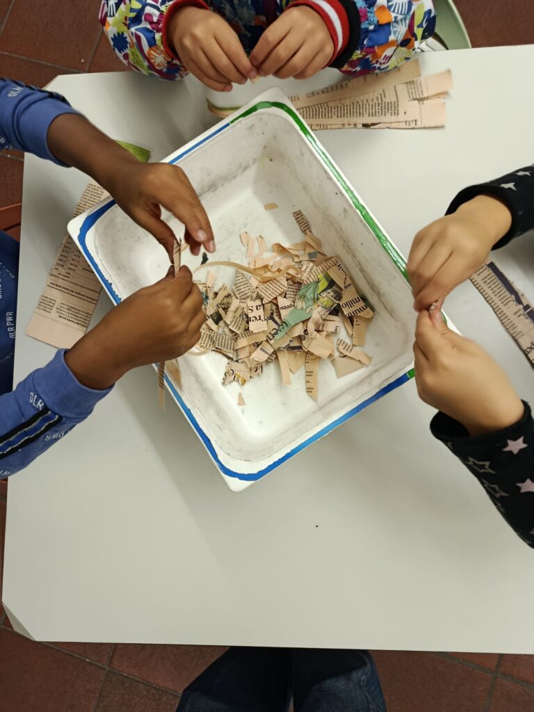 4 Ottobre 2025Mercoledì pomeriggio si è svolto il secondo laboratorio manuale “La carta riciclata”, rivolto a bambini e bambine dai 6 agli 11 anni, presso il Comune di Rubiera. L’attività rientra nel ciclo “Biblio–Mani”, organizzato in collaborazione tra la Biblioteca Codro di Rubiera e il CEAS Terre Reggiane – Tresinaro Secchia. I partecipanti hanno potuto sperimentare in prima persona un vero e proprio ciclo di riciclaggio, trasformando vecchi quotidiani in nuovi fogli di carta.