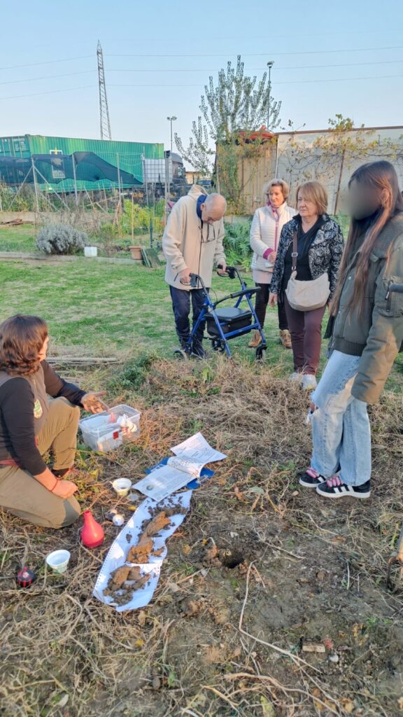 Al centro dell’attenzione il suolo, con le sue caratteristiche, spesso sconosciute, le sue innumerevoli forme di vita, la storia antica della sua formazione e soprattutto la fragilità che contraddistingue molti degli ecosistemi a rischio nel nostro Pianeta. Passeggiare con tranquillità nella bellezza degli orti coltivati con cura, discutere e osservare insieme le differenze tra suolo e suolo, distinguere piante spontanee comprendendo insieme che la natura ha un’intelligenza e che spesso cercare di imitare i suoi processi può aiutarci a proteggerne le risorse. Tutto questo è stato possibile grazie all’educatrice del CEAS Laura Catellani che ha seguito passo passo il progetto.