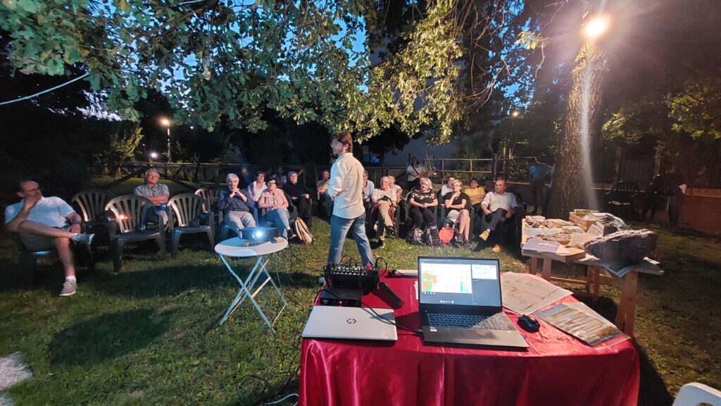 La serata, infatti, aveva lo scopo di mostrare i luoghi di interesse geologico del territorio ma anche di evidenziare le tante altre emergenze locali: dagli alberi monumentali alle aree protette, dai patriarchi da frutto alle strutture architettoniche che rendono il nostro territorio un vero e proprio geoparco.